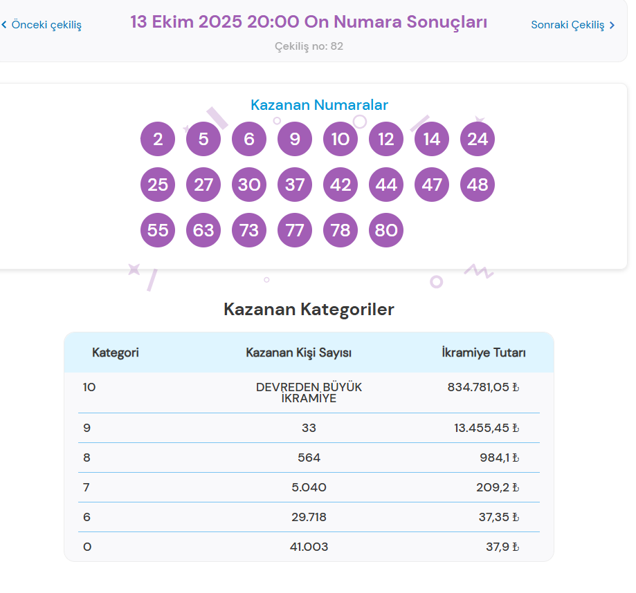 13 Ekim 2025 günü gerçekleşen canlı çekiliş sonrası On Numara sonuçları belli oldu.
